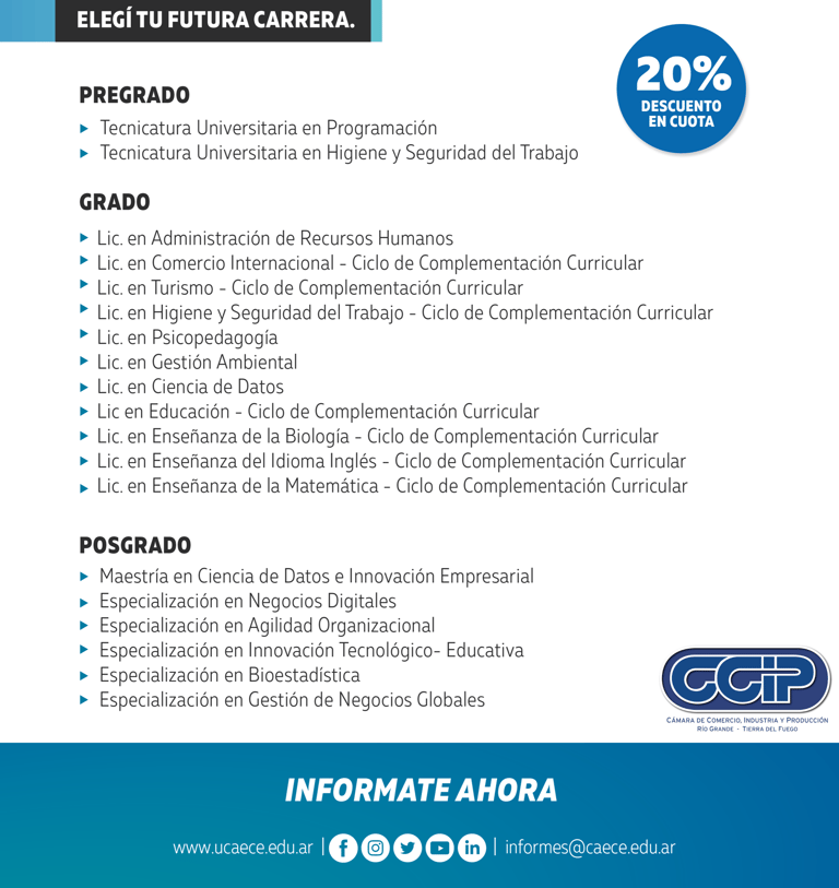 💻 Presencial en Sede Cámara de Comercio Rio Grande - San Martin Nº 627